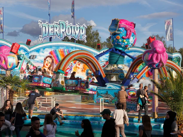 In the 1950s, the Dippemess was relocated to Frankfurt's main fairground (Festplatz) on the Ratsweg, as the showmen’s larger rides and attractions could no longer be accommodated in the city centre. In the generous space available here, the Dippemess rapidly expanded and today it is Frankfurt’s largest fair and Germany’s most popular Easter event. With visitor numbers annually reaching 2.5 million, the Dippemess always features the latest high-tech rides and fairground attractions