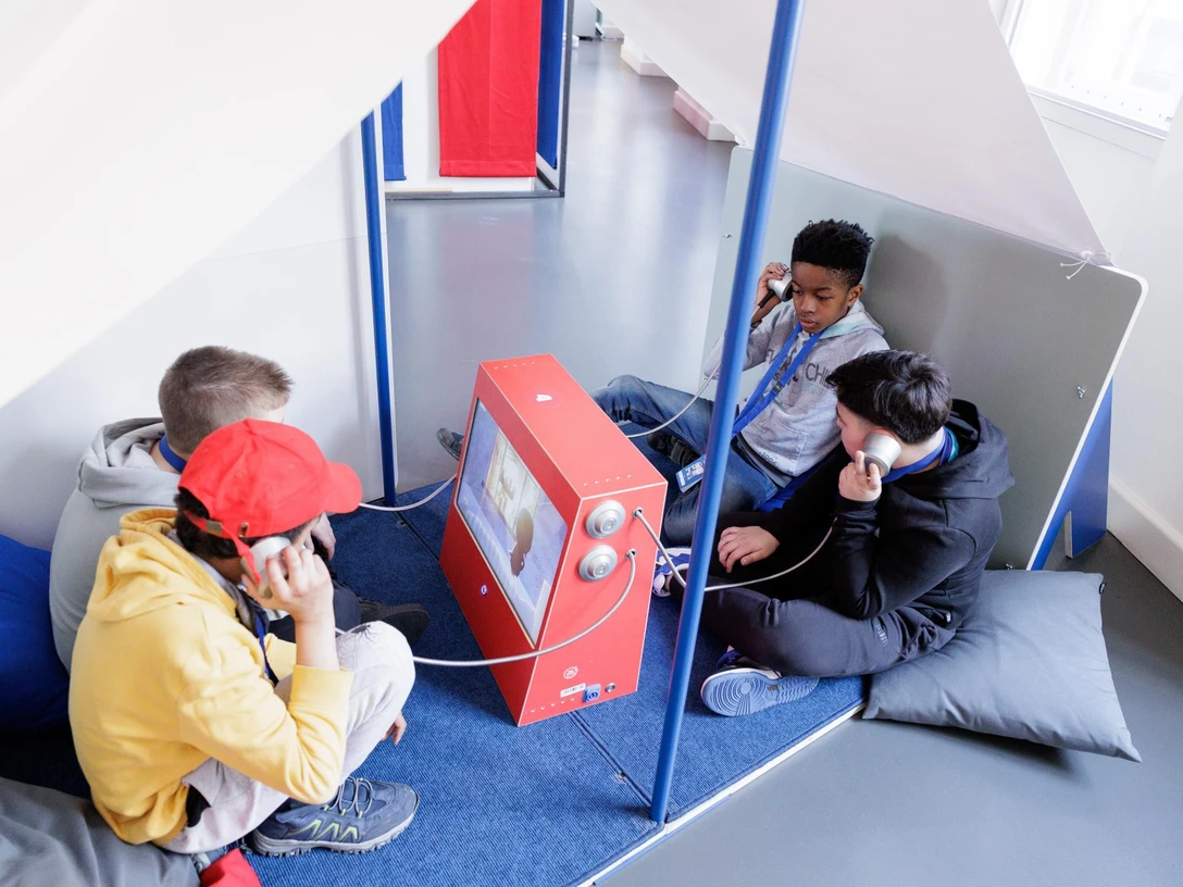 The focus of the family-friendly exhibition is on the relationship between children's rights and the world in which children live. Interactive stations provide clear information about the rights and their importance with hands-on tasks. Equipped with a passport, visitors make their way through the labyrinth of children's rights. The key themes of "equality", "freedom of expression and information", "protection in war and flight", "education and leisure", "protection of privacy" and "good life" are conveyed through playful interactions: doing a demonstration, learning about stories about protection in flight and war, inventing poems, discovering their own relationship to children's rights in various games and discussing together in the "good life" game what everyone feels is important for a good life. At the end of the exhibition visit, a children's right is elected by secret ballot and discussed in the children's parliament.