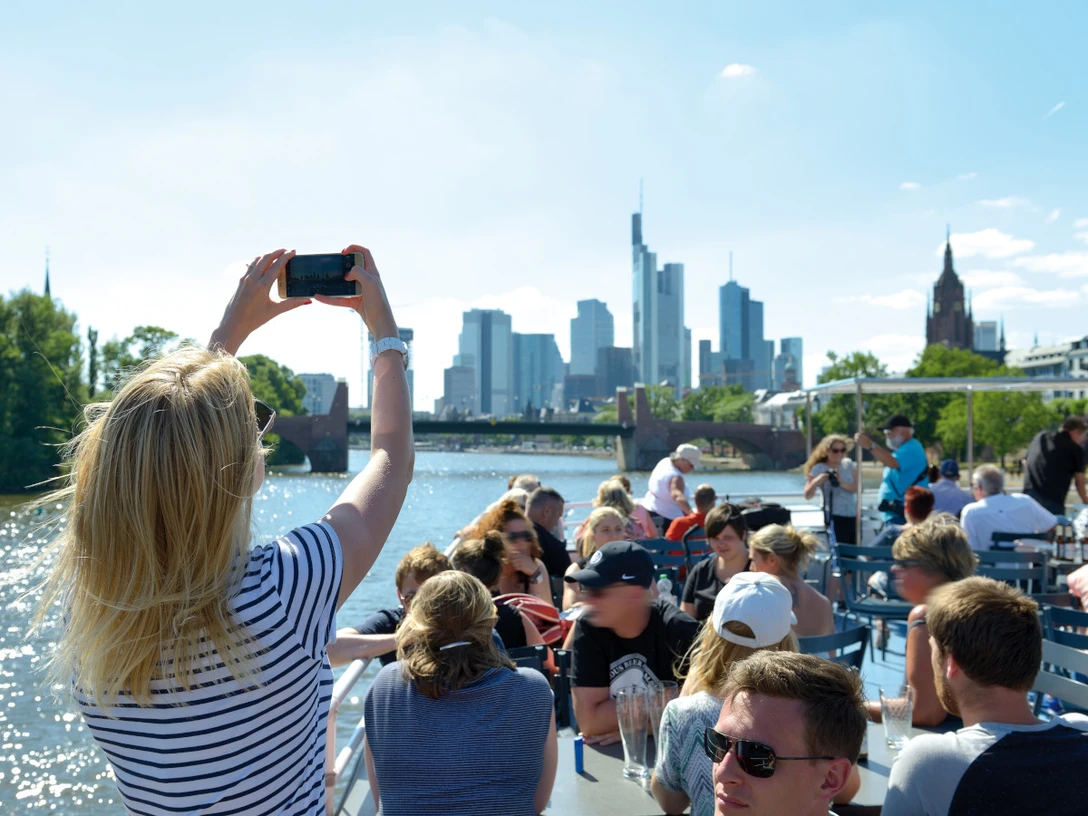 The classic round trip: on a boat trip through Frankfurt upstream towards Gerbermühle or downstream towards Griesheim lock, you can relax and enjoy spectacular views of the Frankfurt skyline and the Museumsufer. One trip takes 50 minutes, both trips combined 100 minutes.