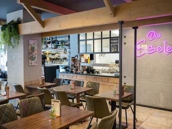 The Eselei even welcomes its guests before the shops open. From 9.30 am, you can choose from an opulent breakfast menu. If you come for lunch or dinner, you can enjoy international and German cuisine ranging from tarte flambée and Wiener schnitzel to Hessian classics - always with a pleasant dose of Frankfurt local patriotism. The tea comes from the Frankfurt tea house Ronnefeldt, the bread from the Frankfurt bakery Huck and the Riesling Hochheimer Hölle from the winery of the city of Frankfurt.