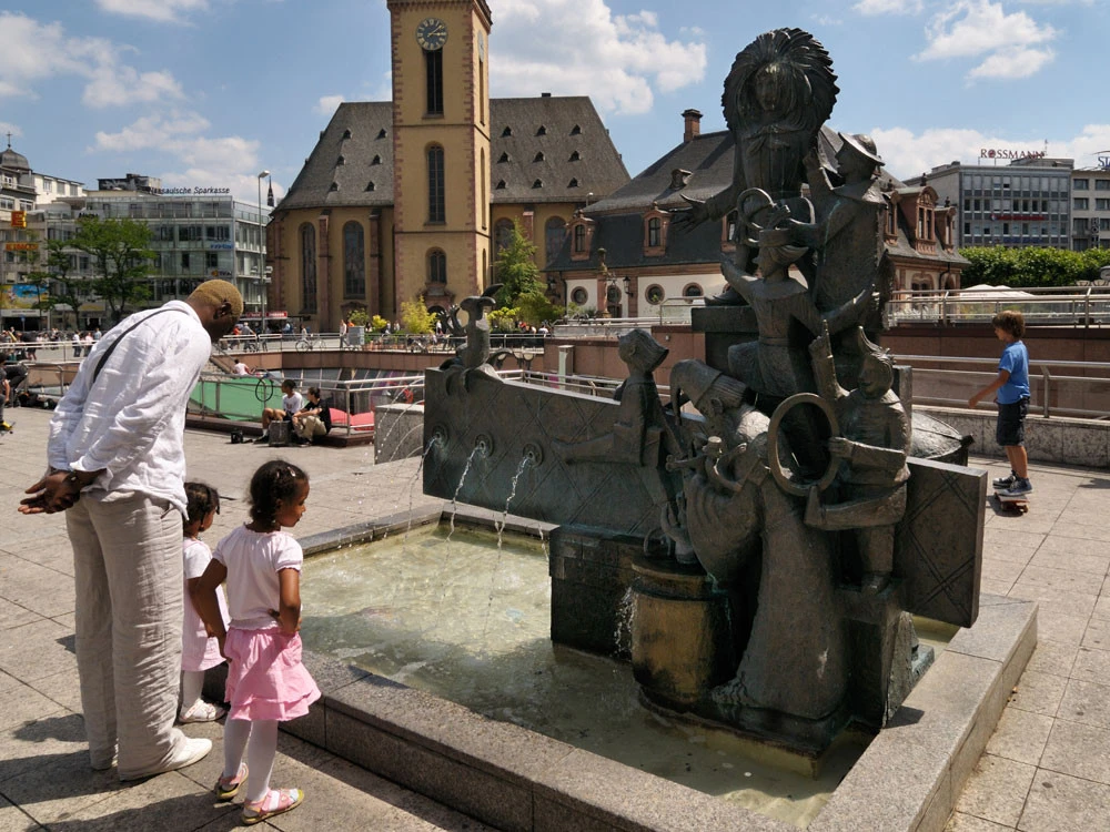 This bronze fountain, erected in 1985 at downtown's Hauptwache, pays tribute to the celebrated Frankfurt physician, Dr. Heinrich Hoffmann, who gained worldwide acclaim as one of the most popular authors of children's books.