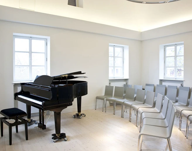 Today it houses the Hindemith Cabinet with five modern presentation rooms, bright and simple in their design. Paul Hindemith (1895-1963), one of the most important composers of the 20th century, lived from 1923 until 1927 in Frankfurt‘s Kuhhirtenturm. The informative Cabinet exhibition sketches a detailed picture of his life and work with numerous documents, original sound documents as well as detailed explanations. The attic room, in which the composer himself lived and which is today used as perhaps the smallest chamber-music room of the world, offers a panoramic view over the roofs of Alt- Sachsenhausen. On the fourth floor of the Kuhhirtenturm is the music room, in which concerts and other events are held. Hindemith came to Frankfurt at the age of ten, and it was in this city that he began his impressive career as composer, instrumentalist, music pedagogue, music theoretician and conductor. Probably more than anyone else, he shaped Frankfurt‘s reputation as one of Europe‘s most advanced musical cities during the 1920s.