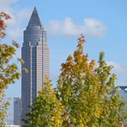 Oswald M. Ungers designed the 117 metres high building, situated right in the center auf the exhibition grounds. It accommodates the service center as well as the administration of Messe Frankfurt. The ‘gate of Frankfurt’ is distinguished by the appealing contrast of glass and red brick.