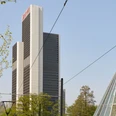 The architect Helmut Jahn (Chicago), often called Tower Father Jahn by the press, opted for an idiosyncratic and postmodern construction method. The round shaft with its grid facade of glass and red granite thins out towards the top like a sharpened pencil.