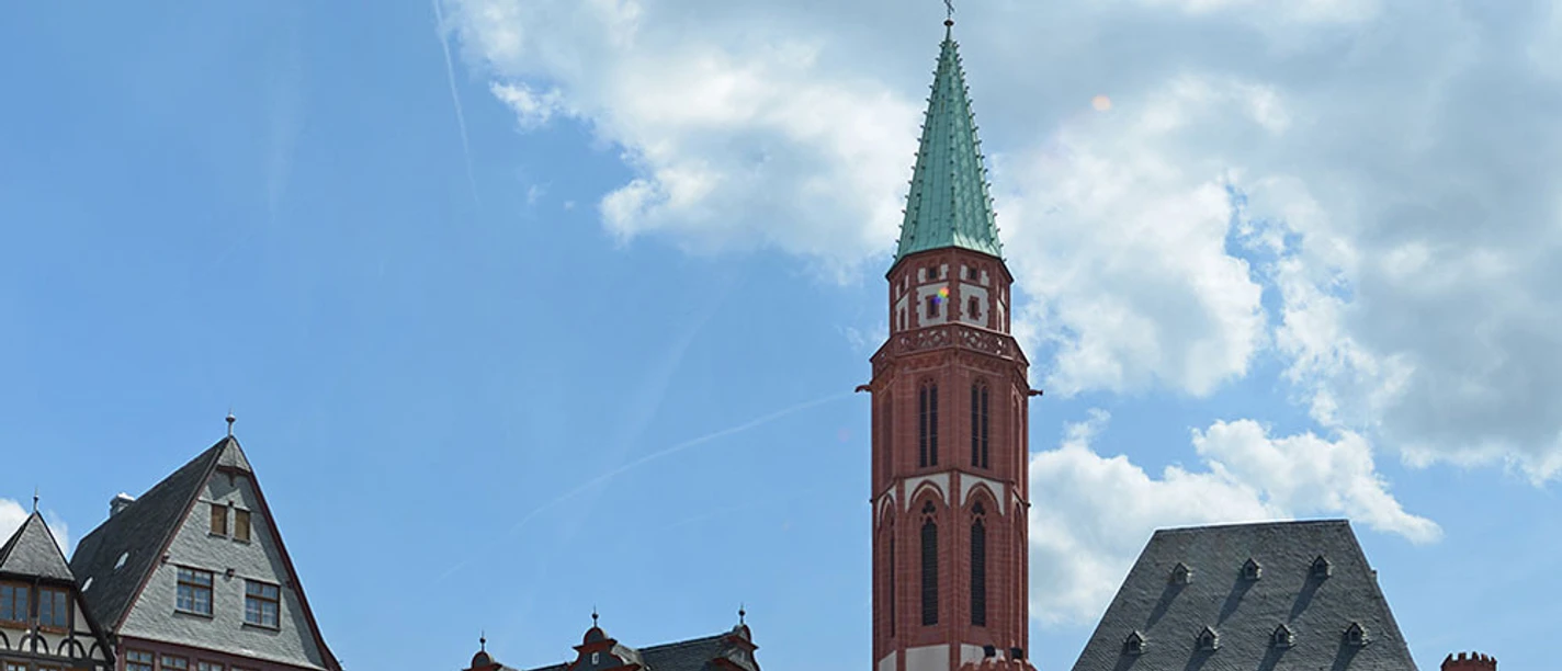 This small church, dating back to the 13th century, presumably served as a royal chapel for Stauferian nobility. First official mention dates back to 24 September 1264. The chapel may well have served as electoral site for kings and parliaments. The church was sanctified in the name of St Nicolas of Bari in 1290. Later, the church became the preferred place of worship for the city's councillors. A Gothic-style gallery was added in 1476, from which the councilmen could watch the festivities. Two significant tombstones are located in the interior, honouring Siegfried zum Paradies and Katharina Netheha zum Wedel. Both were created by Madern Gerthener (1410/1420).