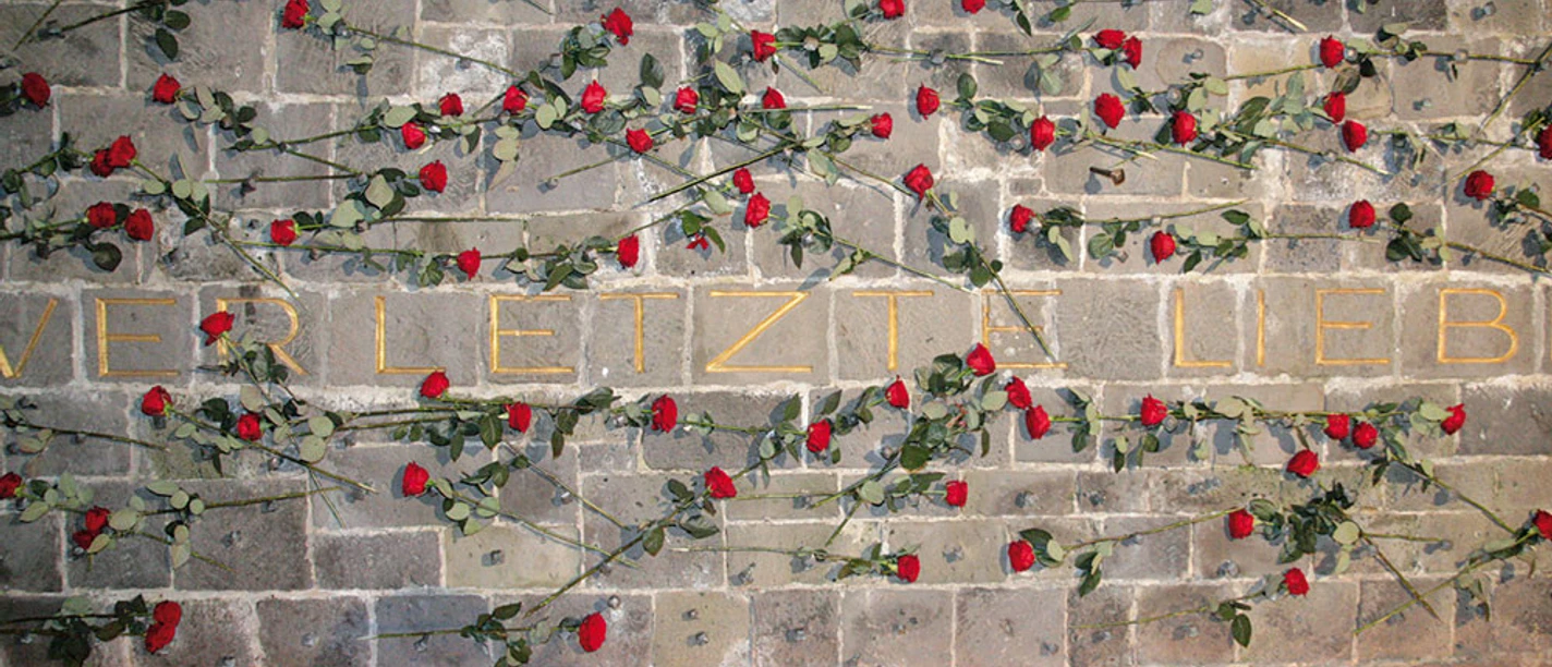 on, leaving behind a red rose for each of the deceased.