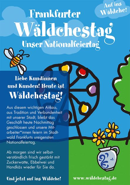 „Der Wäldchestag ist der Nationalfeiertag unserer Stadt und hat eine lange Tradition. Frankfurterinnen und Frankfurter besuchen am langen Pfingstwochenende den Stadtwald und erleben ein Fest für die ganze Familie in einzigartiger Atmosphäre“, so Mike Josef (Oberbürgermeister der Stadt Frankfurt am Main).